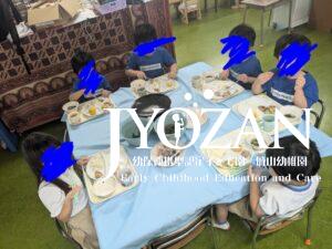 普段のランチはお当番さんに自分の食べたい量を伝えてランチをもらって1番(早く食べる)で食べたり、2番(遅く食べる)に分かれて食べます。