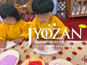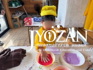 手形をつけて楽しんだり、思い思いの表現が広がっていました。