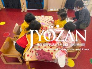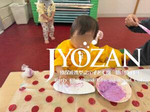 ぐんぐんさんの中には、赤い絵の具が手についた瞬間「血〜!」と言いながら手のひらを見せてくれました。みんなで笑い合いながら楽しい時間になりました。