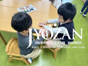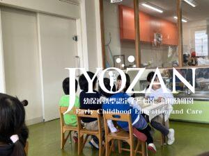 今までなかなかお集まりに自分で参加することが難しかったもも組の男の子。この日は自分でやってきてきちんと椅子に座ることができました。そんなお友だちに、優しく目線を合わせて「すごいじゃん」と褒めてくれていたGくんでした。