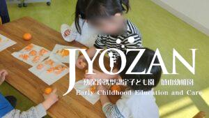 つまり子どもたちの活動としては、年長・年中合わせて4~5名グループに分かれ、目の前のみかん(2個ずつ分けようとすると