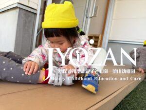 外:木登りをしたり自転車をしたり虫取りをしたりと、お友達が楽しく遊んでいる姿を見て引き込まれるように集まって遊んでいました。木の下にいると蝶のいもむしがぶら下がっているのを発見して、木に登っていく様子をみんなで観察していました。